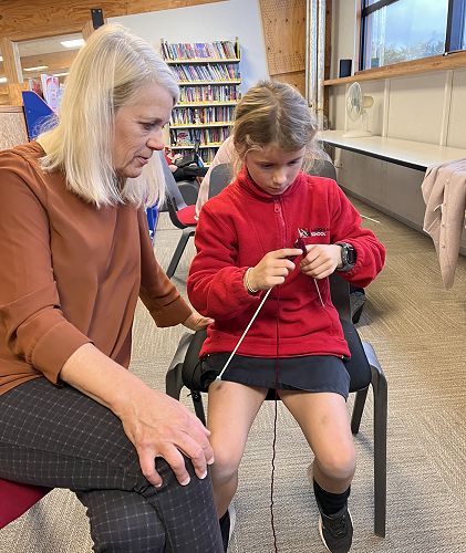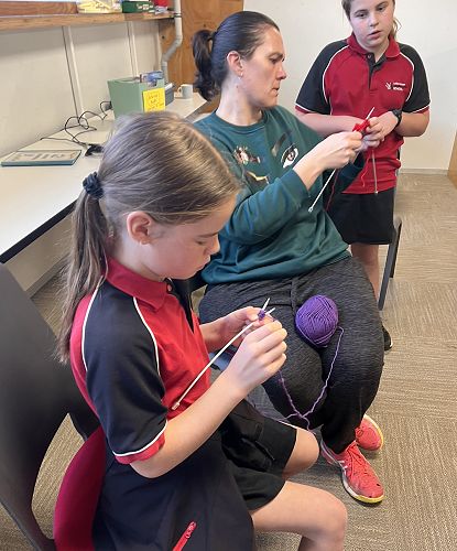 We've been lucky enough to have Mrs Teague's mum, Maureen Braun, who has volunteered for 'Operation Cover Up' for over 20 years in to help get us up and running. With help and guidance from some amazing parents and grandparents the students are quickly picking up the skills and keeping themselves busy during break times and at home.