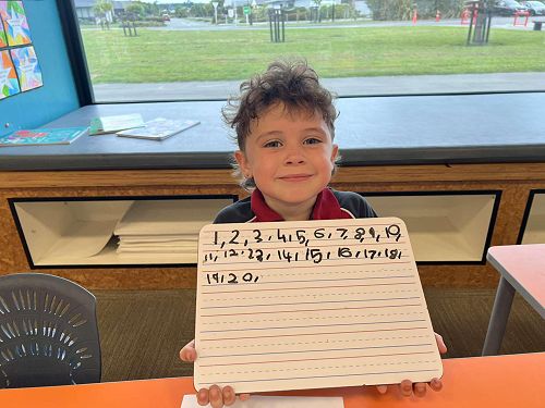Kiwi Roberts and Kiwi Bealing have been focussing on reading and writing whole numbers up to at least 20 and representing them using the ten and one structure of teen and -ty numbers. They have also been having fun with number lines! Using them to solve addition and subtraction problems.