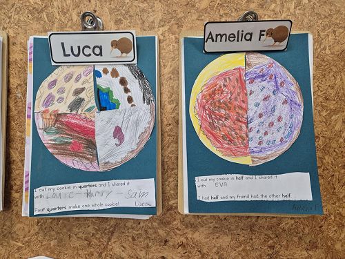 As part of Strand Maths learning, the Kiwi Hub have been having so much fun with fractions. Just look at those creative cookies cut into perfect pieces! We have been exploring equal and unequal parts, and understanding that a fraction is a part of a whole.
