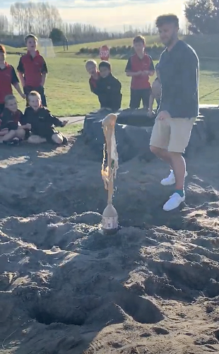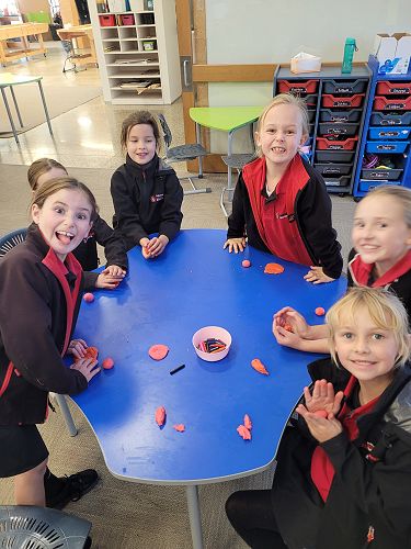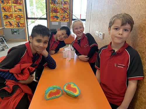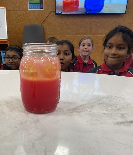 We used different coloured playdough to create a model of the Earth's layers and cut it in half to see inside. We created a volcano in the sandpit and used baking soda and vinegar to replicate a volcanic eruption! Just this week, we made a lava lamp in a jar and observed how oil, water, and an antacid tablet create bubbles similar to hot magma.