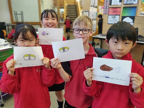 We all love our kai and have our favourites so students began by learning the te reo names for various foods. Students found it interesting to make connections to some of the kupu (words) such as kōura (crayfish) as they recognised that kōura is in Kaikōura. Tamariki also noticed that many te reo kupu sounds like the English words such as ti (tea), kawhe (coffee) miti (meat). These are example of adopted words.
