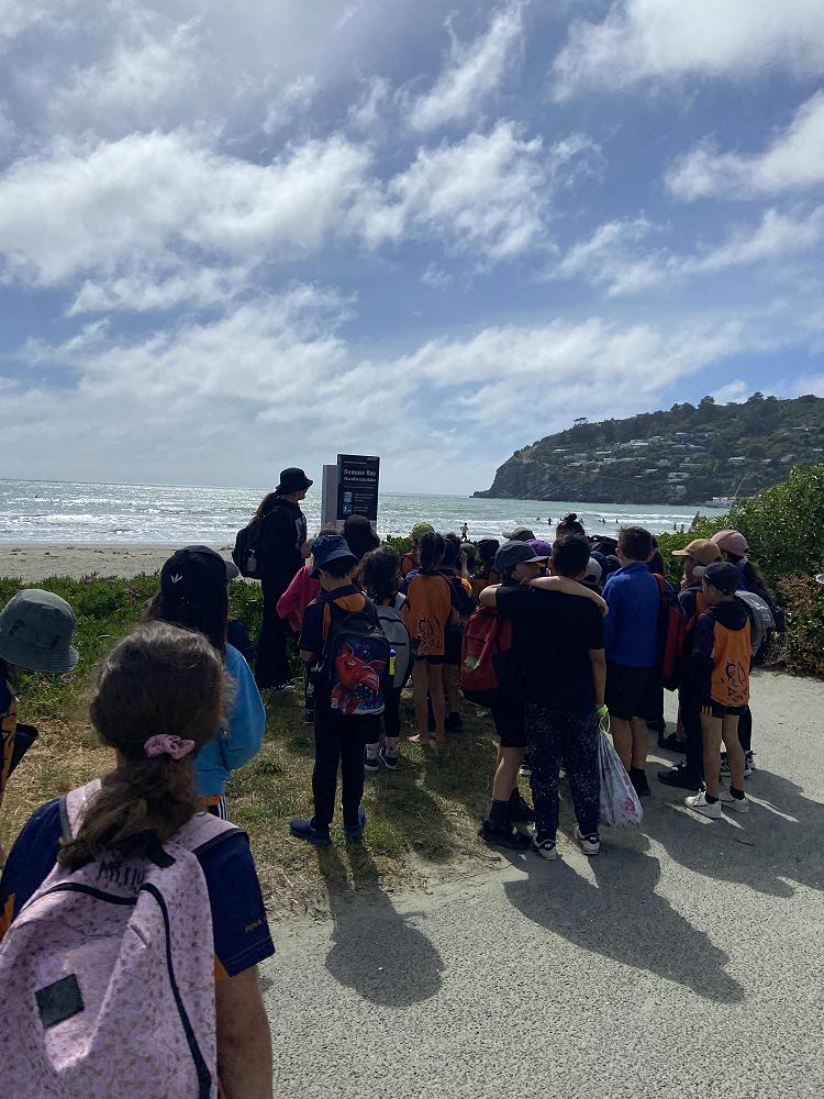Our Atua Matua term focus has been on wai tai, with a focus on whakapapa. The junior school focused on the whakapapa of anga. We traveled to Ohikaparuparu to learn the history of Tuawera. We learnt about the kōrero based on the rangatira Turakipō whose whole hapu was killed by eating a whale that was cursed. Cave Rock today is a reminder of this history as it is in the shape of a whale. Our tamariki were able to contribute and understand this kōrero by having this place-based experience. We included whakatinana in haerenga by having the tamariki explore the rocky shore and walk from Sumner to Scarborough. Focusing on the environment has been an important way to reconnect whānau with our places, communities, history and traditions.