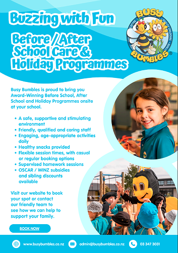 Busy Bumbles also runs school holiday programmes. Please email admin@busybumbles.co.nz.