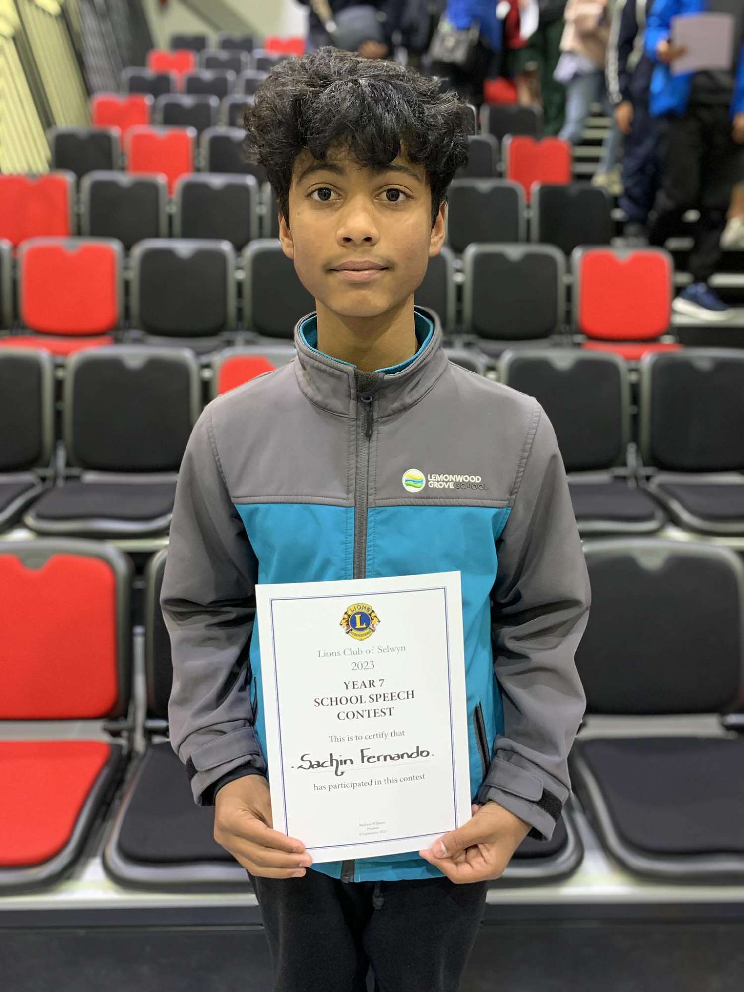 Sachin and I were chosen to represent Lemonwood Grove at the Selwyn Speech competition. Once we arrived at Haswell School we were first welcomed and seated in the hall. The event leader explained how the night was going to run. We were split up into two groups; the year sevens went into a learning space, while the year eights stayed in the hall. After everyone was ready they announced who was going to present their speech first. There were many different topics like “why I should be president”, “pineapple does not belong on pizza” and "why you should shop at op shops” plus many more.