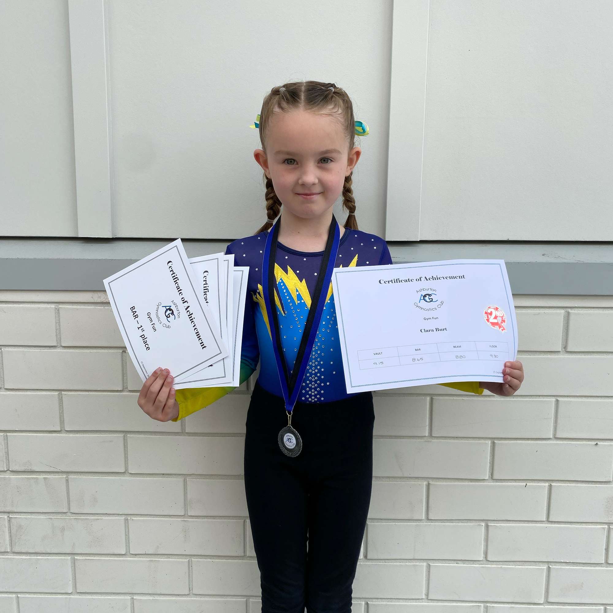 Clara competed last weekend in The Ashburton Gymnastics Club competition for West Melton Gymnastics Club. Clara is currently in GymFun and placed;