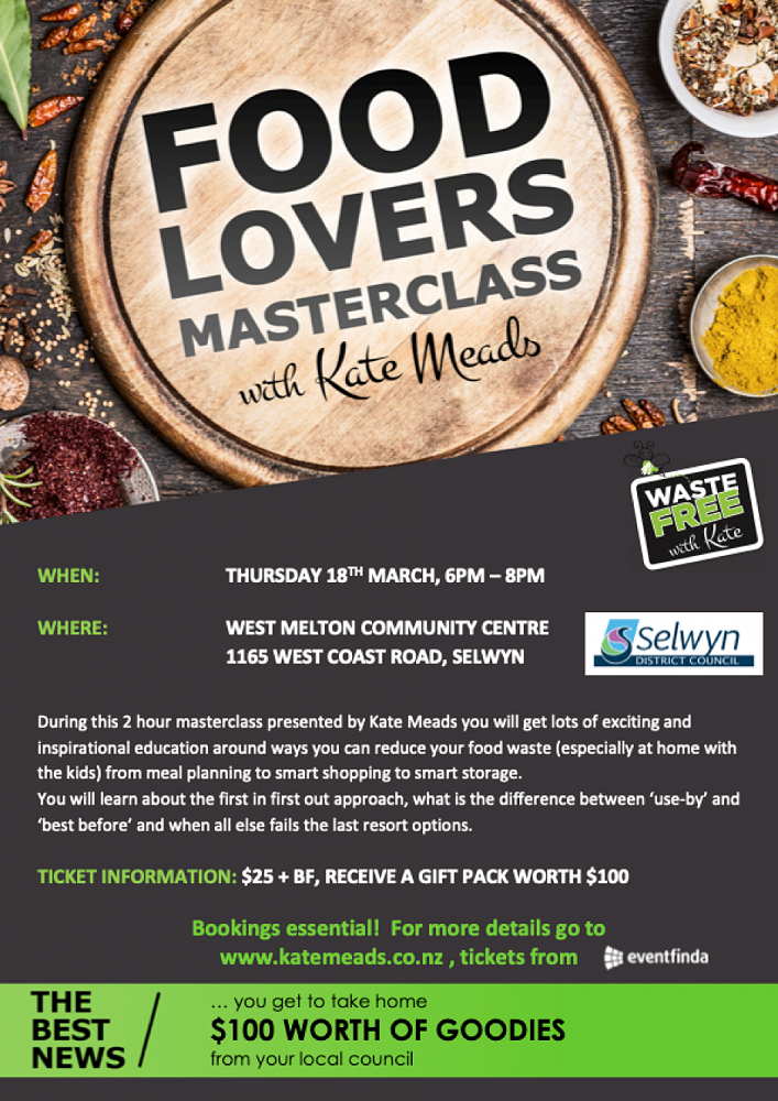 Booking page: https://www.eventfinda.co.nz/2021/foodlovers-masterclass/west-melton