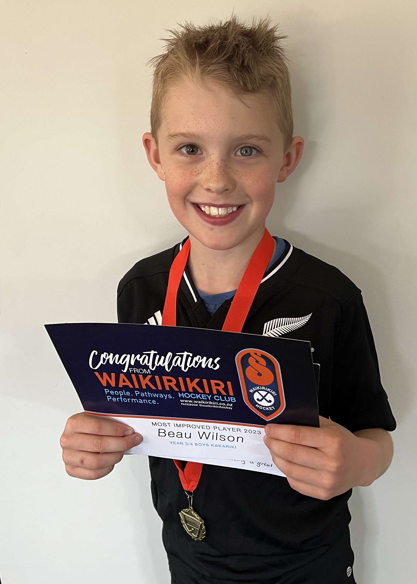 Beau recently finished his second season with Waikirikiri Hockey, playing for the year 3/4 Kakariki team. He received the most improved player at the end of season awards. He was very chuffed and looking forward to next season already.