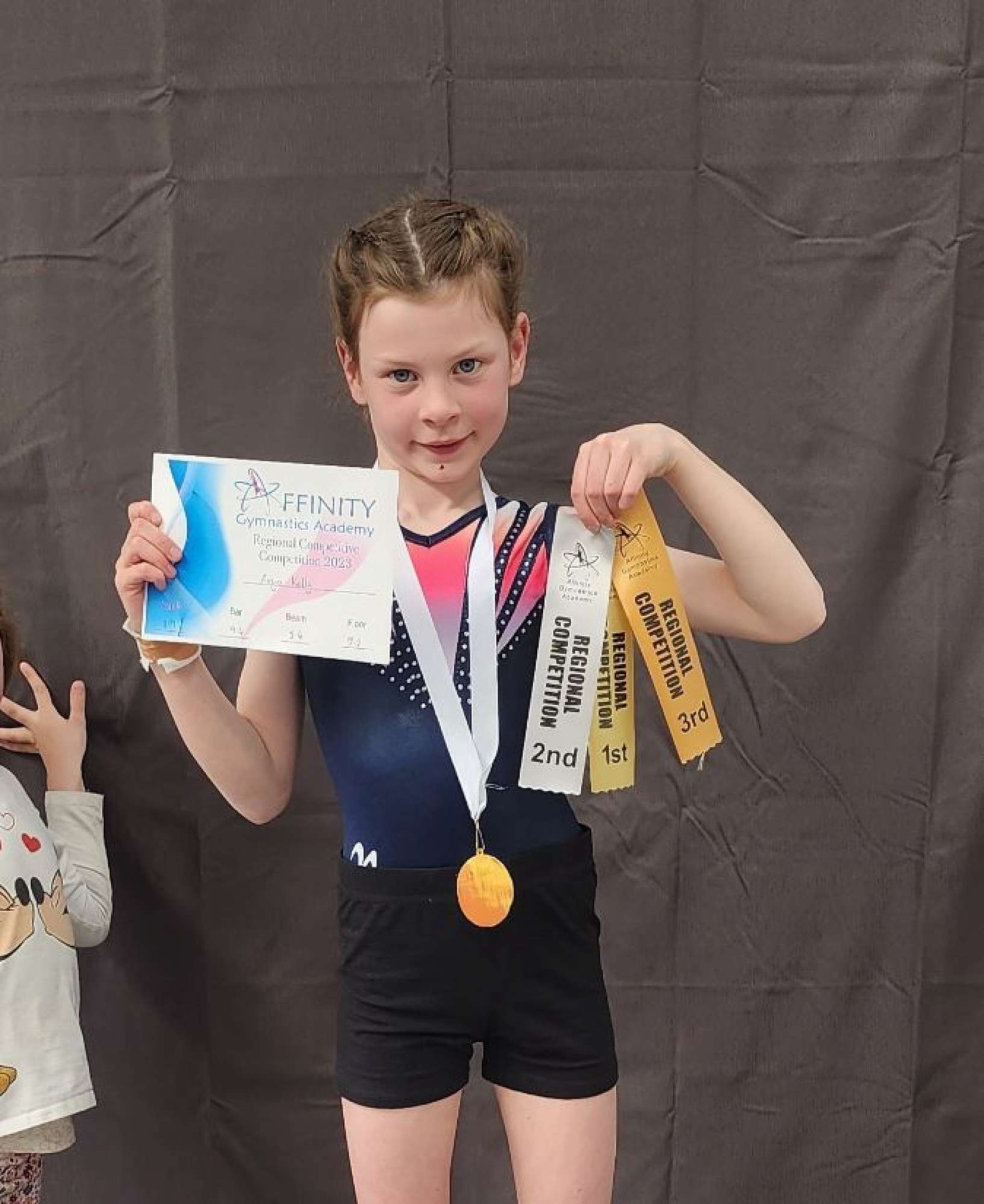 Arya competed in her home gymnastics competition last weekend. She placed 1st on bars, 2nd on floor and 3rd on beam. And she got a medal for 1st overall!! Thanks so much to her coaches at Affinity Gymnastics Academy.