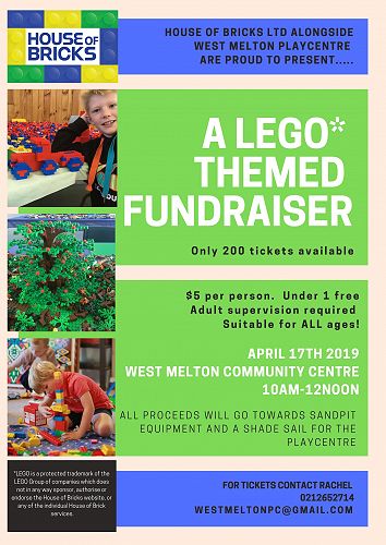 Please see the poster below regarding a House of Bricks event run by the West Melton Playcentre these school holidays.