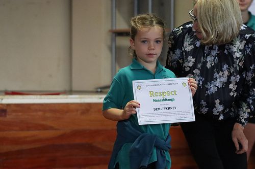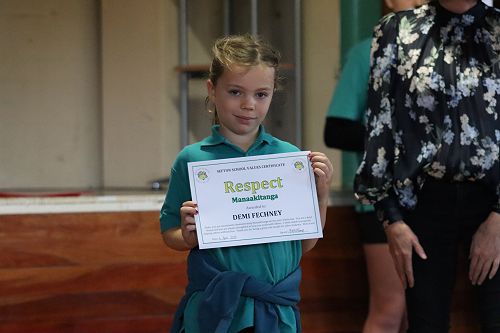 Elisabeth Gillies: Elisabeth, you are always using the Respect Value - Manaakitanga at School. You are a role model in our classroom. You have beautiful manners, you are kind and respectful to all. We love having you in Room 6. Kaa Rawe !!