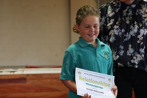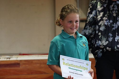 Alexis Williams: Alexis, this is just one area where you continue to shine everyday. You demonstrate whanaungatanga by being a kind friend, but you also use these skills when working with your peers in class. You continually have a smile that welcomes other people into your group and you can build positive relationships with those around you. Well done.