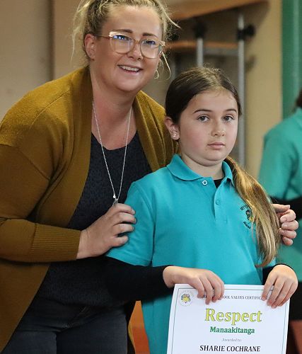 Sharie Cochrane: Sharie, you show Manaakitanga to staff, students and visitors that come to our kura. You are respectful of others ideas, follow instructions, respect our kura and always make our day with your lovely smile. Thank you Sharie!