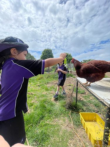 Children took part in various activities such as feeding chickens, making muesli bars, exploring habitats, river walks, scavenger hunts, collecting kai and making quiche and so much more.