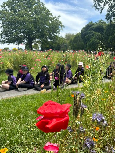 Kea te kei have been doing regular nature walks around the school and community this term. Watching the leaves coat the trees as spring arrived, and the flowers appear with the hot summer sun. The last week the children sat between the two islands of wild flowers on the park path. As they sat underneath the bee highway above them they watched the bees hop from one garden to the other. Twenty six bees were counted in just one minute.