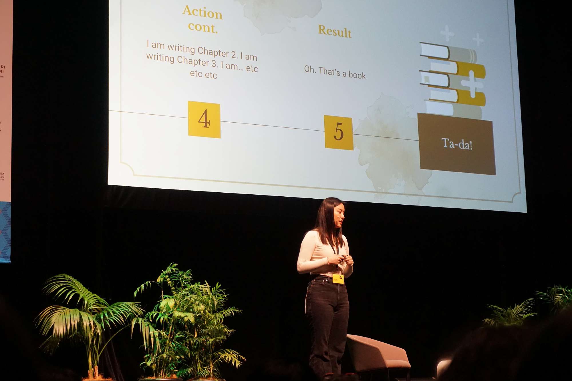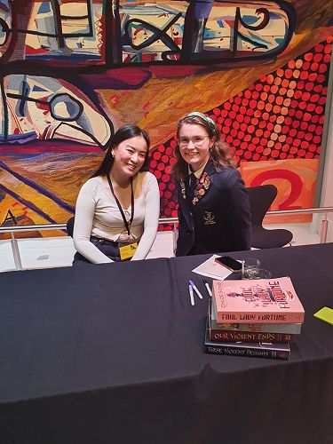 After a lunch break, filled with book signings and book shopping, it was time for the third speaker, Chris Tse, a famous New Zealand poet and the 13th NZ Poet Laureate. His talk was about how he struggled with his identity, how he came out as a gay man and about his Chinese heritage. He also talked about the top 10 topics poets often wrote about, such as death, love, war, etc. Chris’s talk was compelling to listen to, as there was beautiful poetry in his talk, which he read. He was joined by Claudia Jardine & Amber Esau, who shared some of their poetry, fitting the themes he discussed.