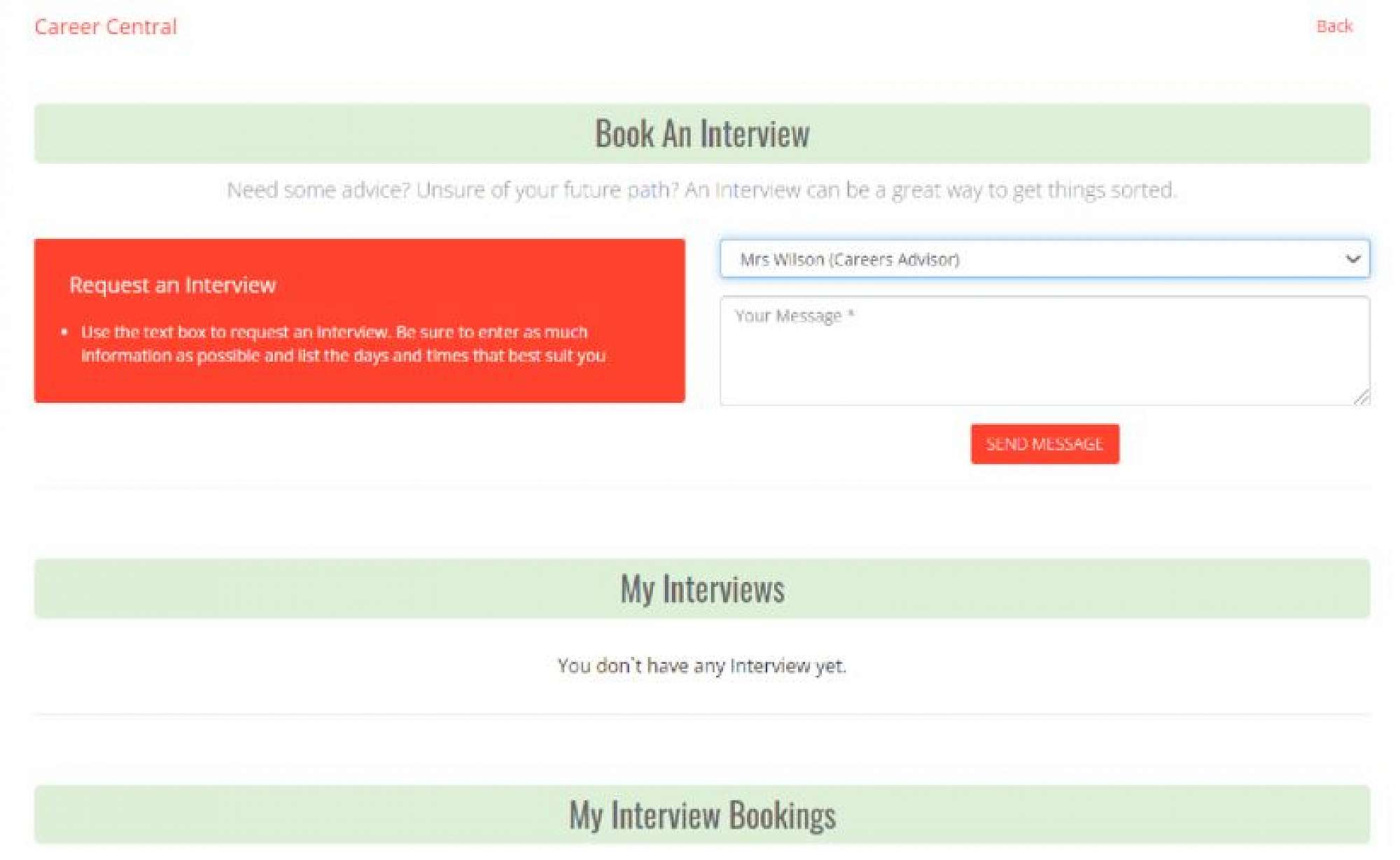 Booking an appointment/interview