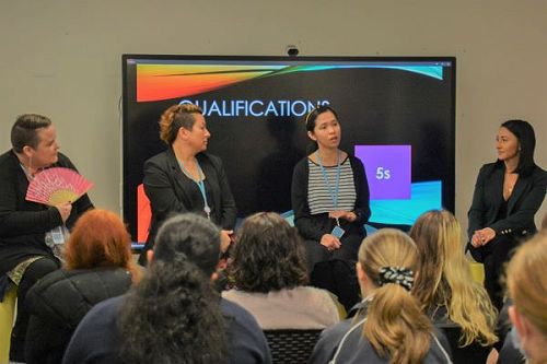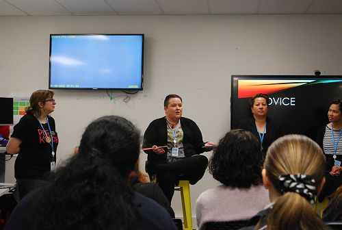 Students heard from Tauranga City Council Scrum Master Tamsin Oliver, Cyber Security Engineer Jaimee Pasig, Team Leader: Digital Capability Espie West and Digital Programmes Specialist Shannon Pawhau about the different careers digital technology can lead to.