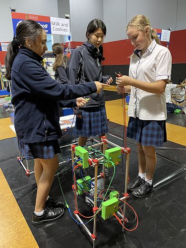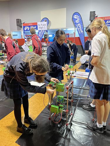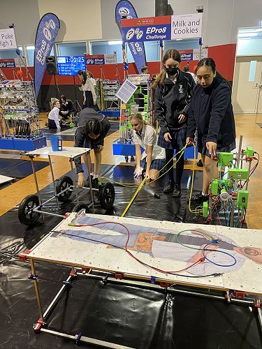 Thursday night was the Year 11-13 competition, with 10 other teams entered from ACG, Katikati College, Tauranga Boys' College and Bethlehem College. The teams had 2.5 hours to complete as many engineering challenges as possible, including a vending machine, road-marking robot, a motorised magic show and a motorised system to get lazy “Uncle Albert” out of bed. Both senior teams, Crazy Smart Asians and Milk and Cookies competed well, showing strong communication and problem-solving skills as well as resilience, determination and a sense of humour. Our returning 2021 Champions Crazy Smart Asians competed well but were pipped at the post, coming in a close second. This team will be continuing into the Grand Final to be held on 30 June. The team consisted of Jin Lee, Erina Islam, Gayathri Dinesh and Arabella McDonald.