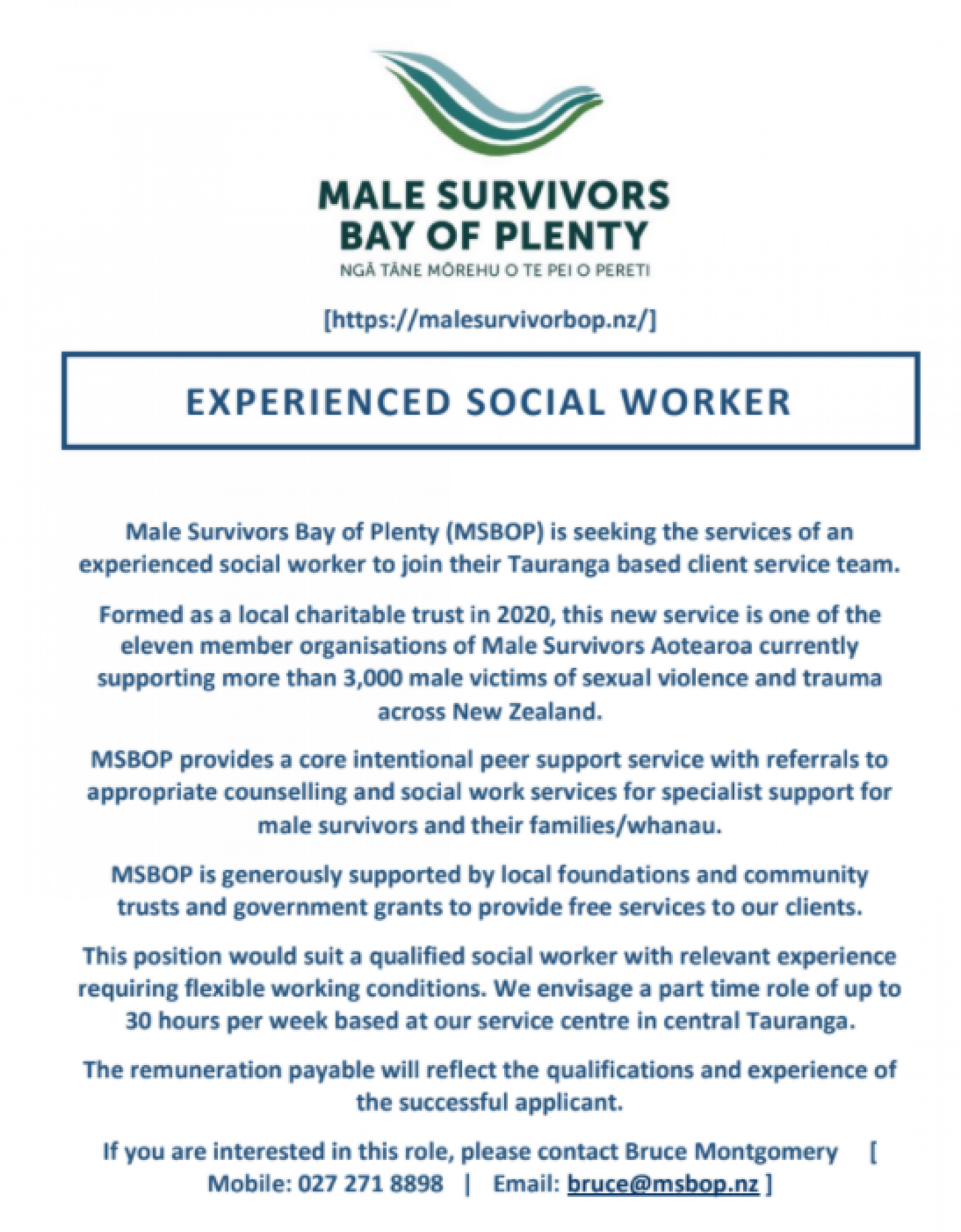 Vacancy for Social Worker at Male Survivors, Bay of Plenty