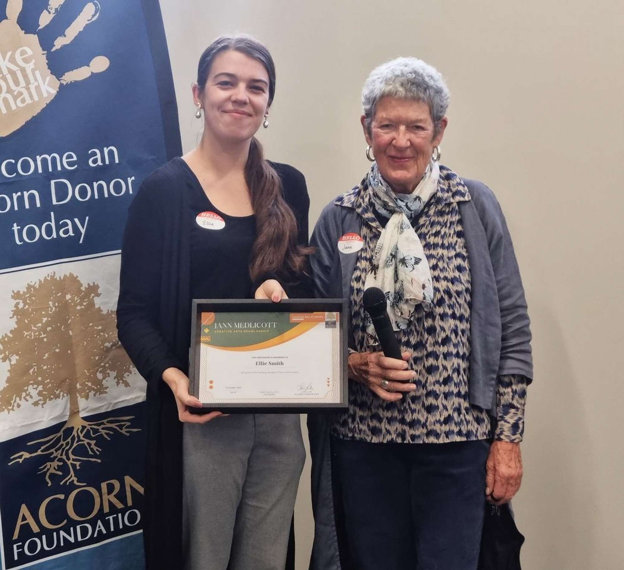 Congratulations to the 2021 recipient of the Jann Medlicott Creative Arts Scholarship - Ellie Smith! Ellie is pictured here receiving the award from Acorn donor Jann Medlicott at our Morning Tea event earlier this week.