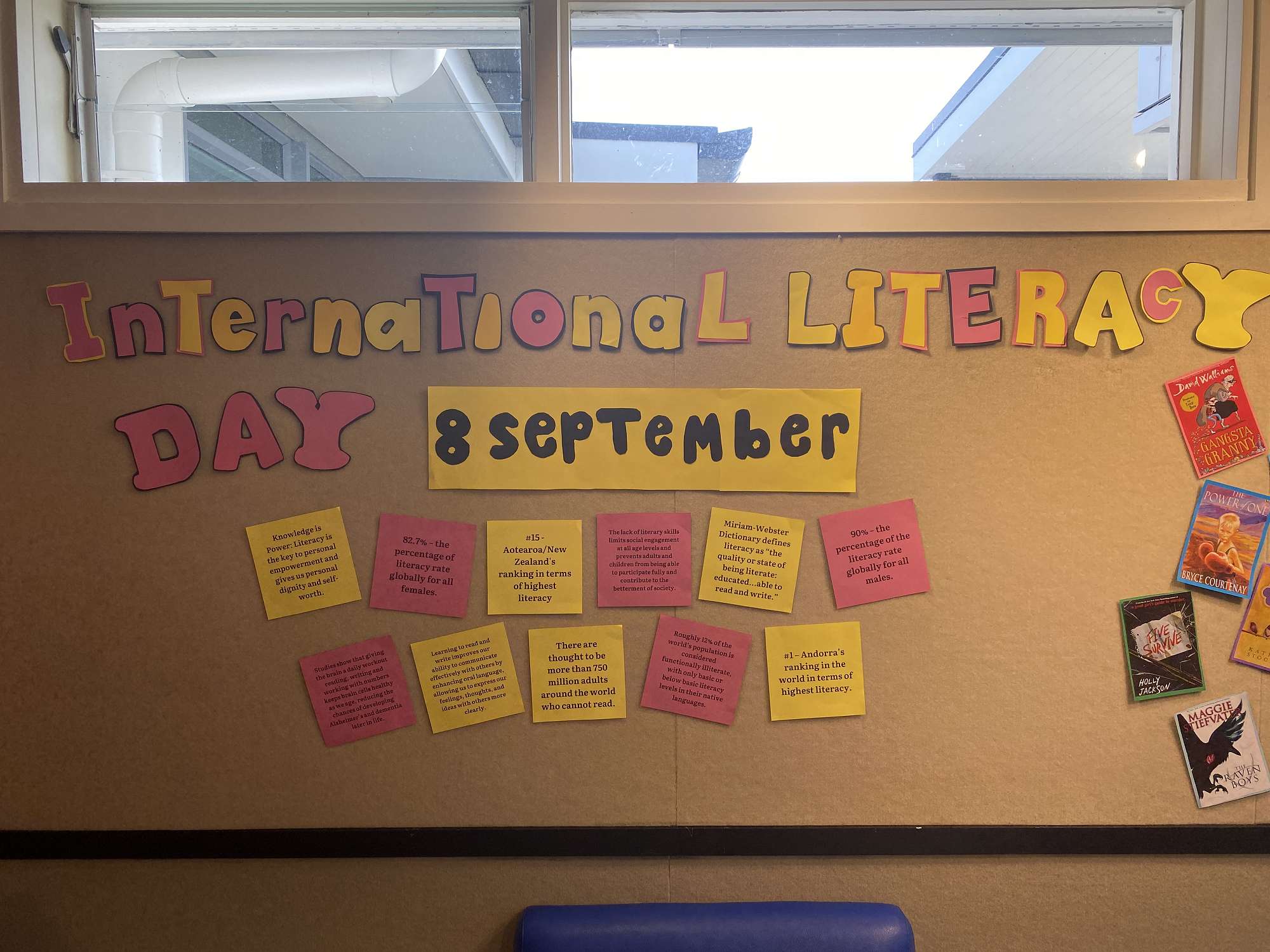 On the 8 September, it was International Literacy Day. With the help of the Student Librarians, we created a display to inform. It included a list of some of Tauranga Girls’ College’s staff and student's favourite books. As well as some information about Literacy itself, like: Andorra is top in the world for its Literacy rate, the percentage of the literacy rate globally for all males is 90% while for females it’s 82.7%.