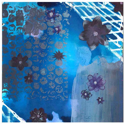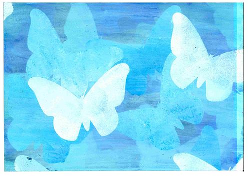 I wanted to put everything I had learned throughout the term into this piece of art, so I first chose a blue dye base. I selected blue because it is one of my favourite colours, and blue looked cool for the examples I saw in this type of combination painting. I then spread the dye around the page until I was satisfied with the shape. I wanted to overlay everything because I thought it looked cool. I then got bubble wrap. I chose white because I was too scared to put another colour.