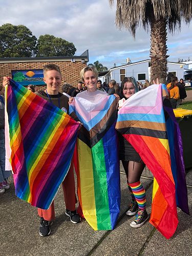 About 100 students and staff showed up for the event, donning Pride flags and colourful accessories to show their pride. The group then walked a route through the school and along Cameron Road to showcase their unity. Phoenix Maher (she/they), one of the QSA students who helped to organise the event says
