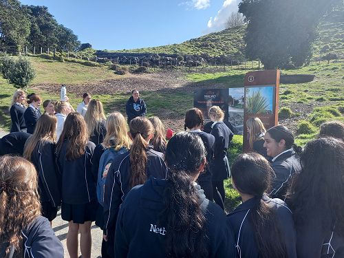 To aid in this learning, we took a bus tour of Tauranga. We started in Papamoa East, looking at recent development and the site for the proposed Te Tumu development and visited other urban areas of Tauranga that students don’t always visit regularly. A crucial part of the trip was to walk part way around the base of Mauao to hear about early Māori settlement in the area and think about why Māori chose to live where they did from a geographic perspective.