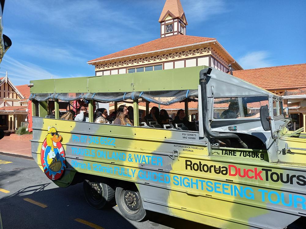 Our first stop was on “The Rotorua Duck”. The WWII era amphibious vehicle was a great way to see the natural and cultural features and to learn about the history of Rotorua.