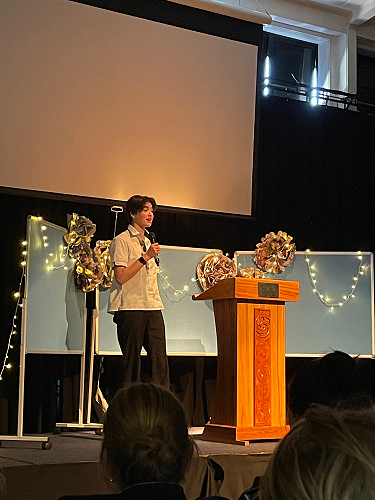 Kyla Chen, Year 12, was awarded third place for her poem which tackled deep themes through breathtaking and visceral language. Some favourite quotes included ‘A trail of roses down my leg, rope burns around my neck from when he strangled me’ and ‘He thinks because I am a girl I fear him, I do not.’ Kyla’s commanding presence had the audience speechless, and she no doubt has a bright future ahead.