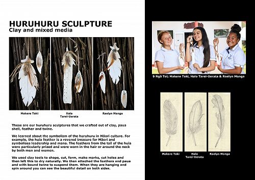 We learned about the symbolism of the huruhuru in Māori culture. For example, the huia feather is a revered treasure for Māori and symbolises leadership and mana. The feathers from the tail of the huia were particularly prized and were worn in the hair or around the neck by both men and women.