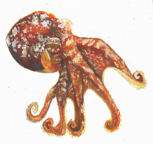 Our finished diorama will consist of three layers, with different mediums and techniques applied to each layer. Above is my detailed object (the octopus) which will be just one layer of my finished diorama. Throughout this process we are learning to use a wide range of materials and to apply awesome techniques (such as stencilling, transferring images with gel medium, working with modelling compound and shellac and also doing detailed tonal work), which we will use to create a really interesting piece of art.