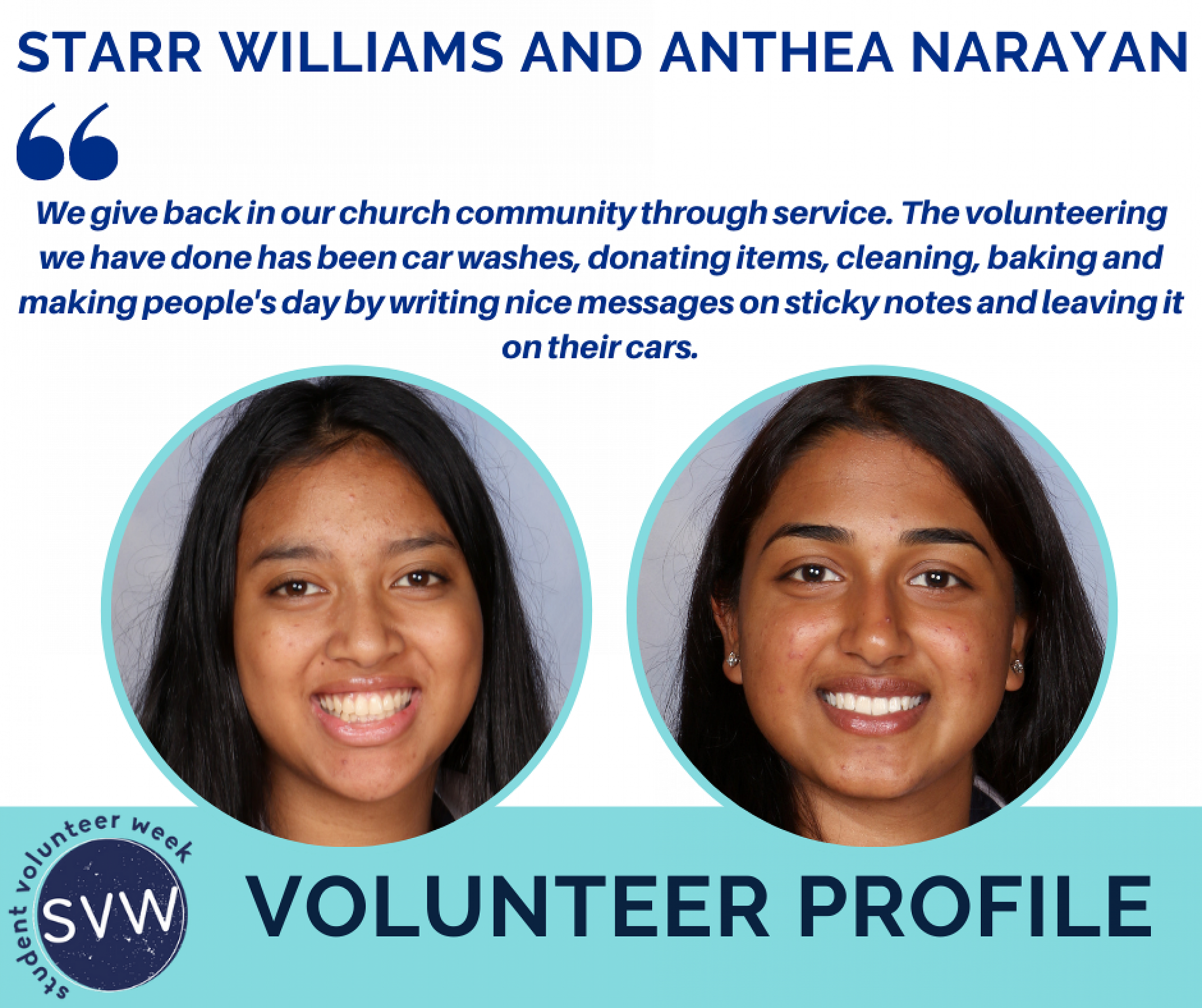 Year 10 students Starr Williams and Anthea Narayan volunteer in their church community, The Church of Jesus Christ of Latter-day Saints in Gate Pā. They got involved through their youth group and love being able to give back in a number of different ways.