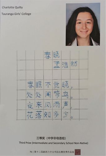 Heartfelt congratulations to the students who were awarded certificates in the 12th New Zealand Chinese Calligraphy Competition 2021. 恭贺她们在2021年第十二届新西兰中国书法比赛中获奖