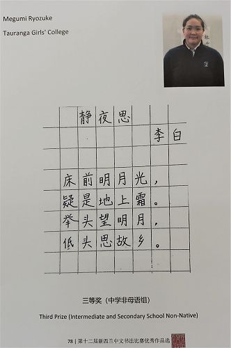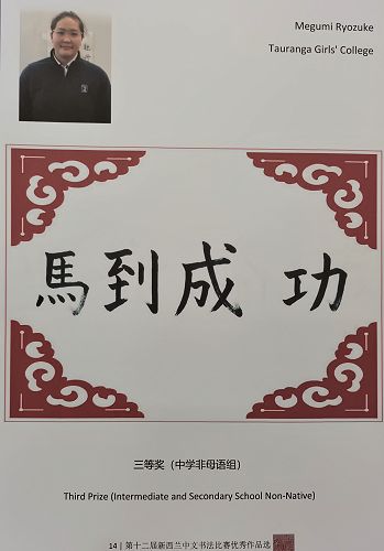 Megumi Ryozuke was awarded Third Prize in Hard Pen and Brush Pen respectively, Non-Native category;