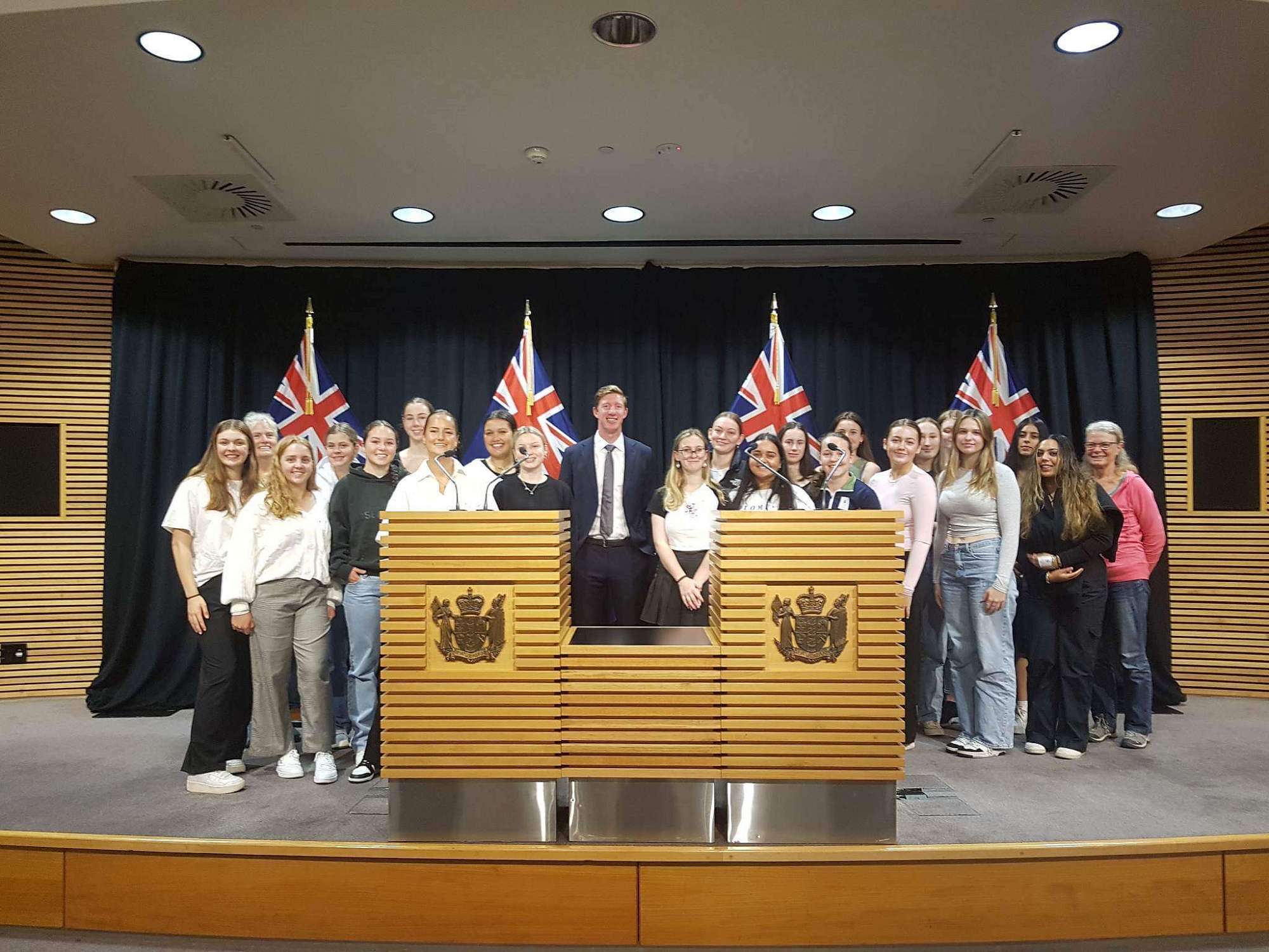 The trip commenced with a visit to the iconic New Zealand Parliament. We were lucky enough to get a tour around the spectacular Beehive, which included a look around the debating chamber and a talk from Sam Uffiindell, the MP for Tauranga. This tour taught us about New Zealand's political history and informed us about potential jobs in that sector we could pursue.