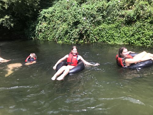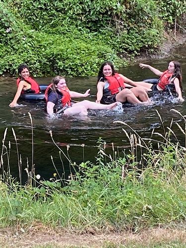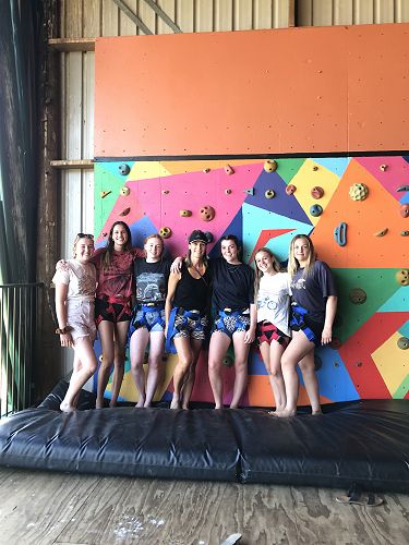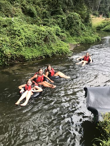 The first day of camp, the girls took part in a variety of traditional camp activities. Activities ranged from rock climbing to tubing to archery tag. The abseiling was one of the most challenging ones, moving backwards down a cliff face and into water at the bottom. The waterslides were hugely popular.