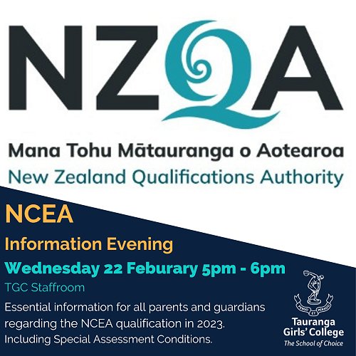 - 5pm - 6pm - NCEA information evening in the Staffroom