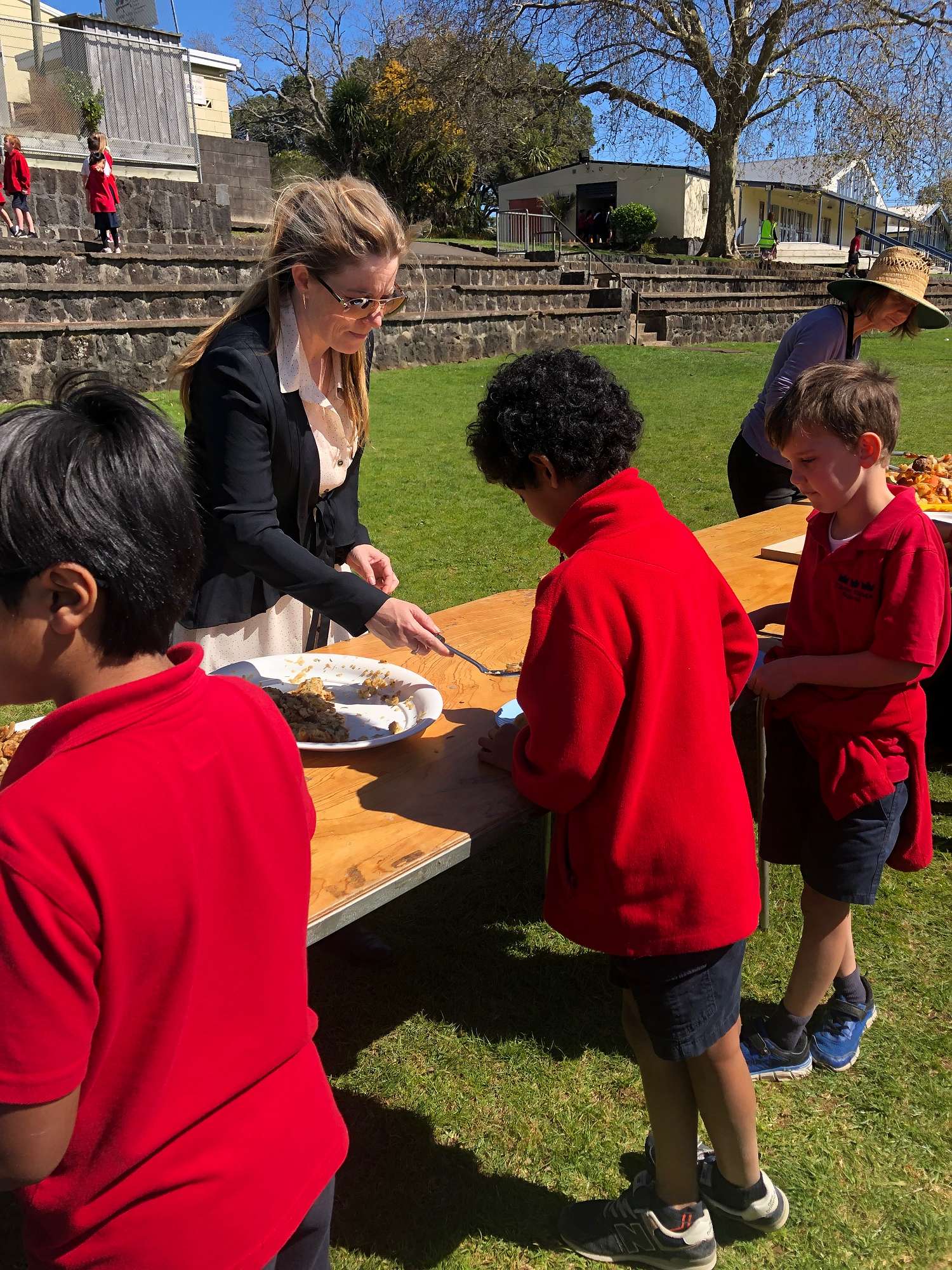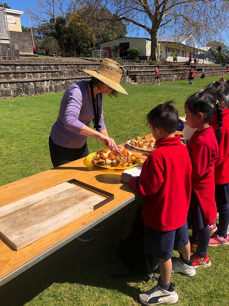Excitement fizzed around me as the parent helpers and experts scraped the soil off the Hangi with their shovels. Steam billowed up into the sky. Murmurs burst out. As the adults carefully but quickly, pulled the wet cloths off the food a sudden delicious smell burst from underneath the cloths and ran around wildly. It brushed past first, but luckily they didn't succeed. Our class was next. Brody was selected to play. And then I was hungrily selecting food , and soon I was stuffing my face with stuffing. It was so good!!! There was onion, a hint of of herbs, but mostly bread. After that I grabbed the meat and ripped it apart with my teeth. It was delicious!