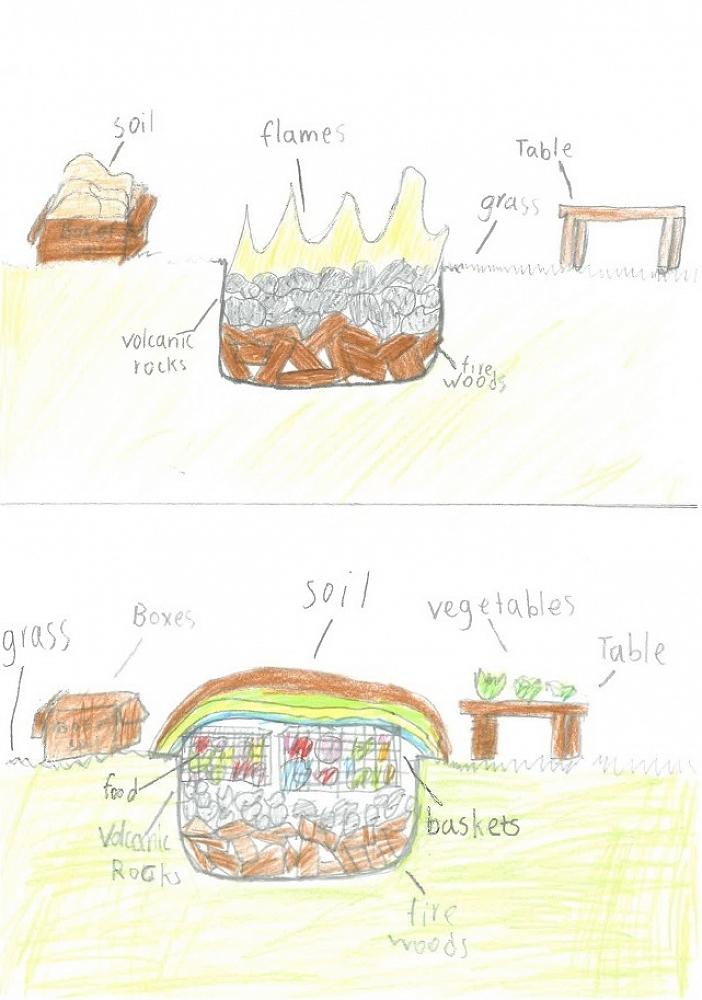 Watch our video of the children singing as the hangi goes down, look at all our photos and read the children's work.