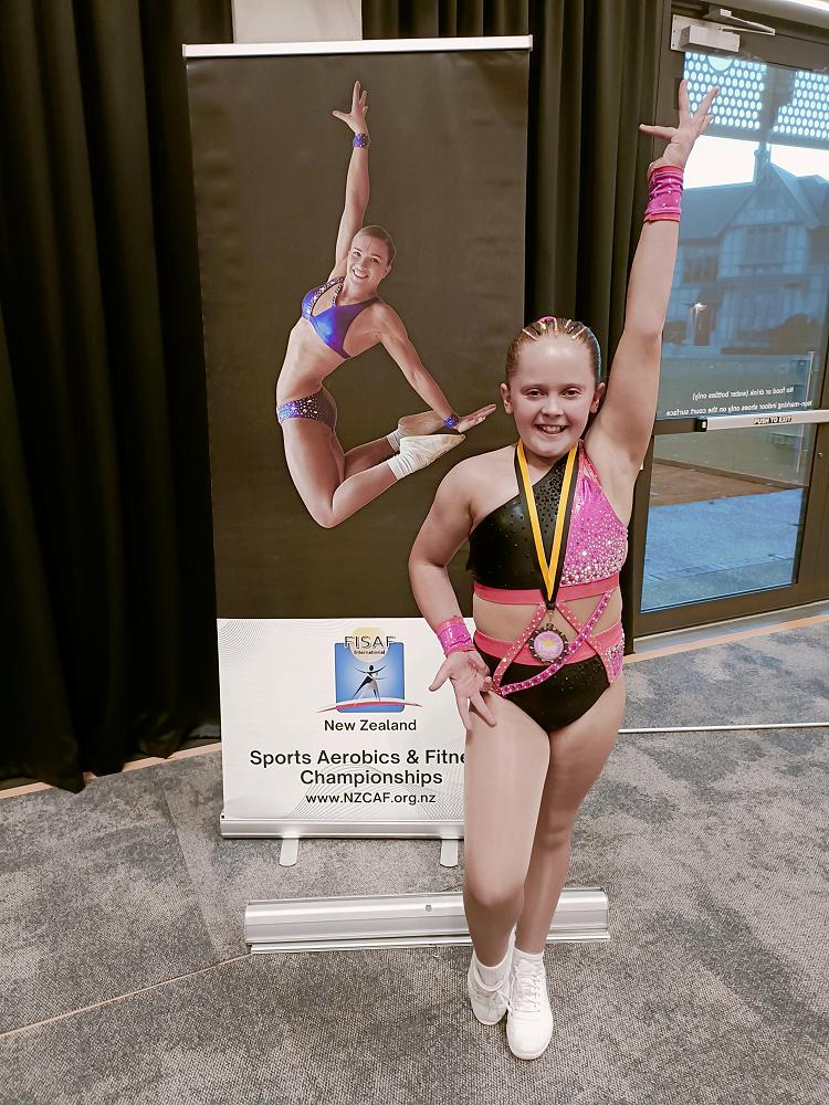 Amelia Rothschild-Stewart entered the FISAF 2024 Pacific (Australia/NZ) Open Sport Aerobics Competition in Christchurch at the weekend and came 3rd in her section out of all the entrants from Australia and New Zealand. Congratulations to you too Amelia!! What an outstanding achievement! What an extra special moment it was also for you to meet your idol, and the person who has inspired you along the way: Kylie Lyders, a New Zealand aerobics athlete. That was clearly very exciting!!