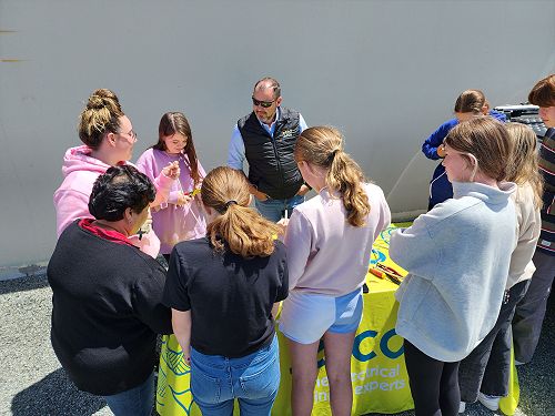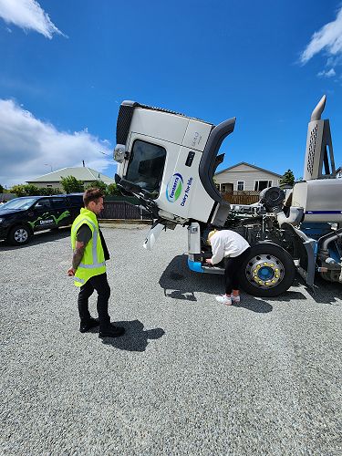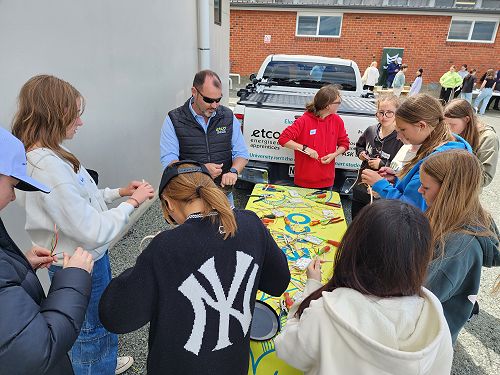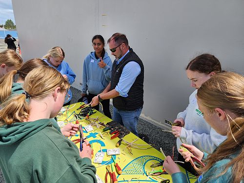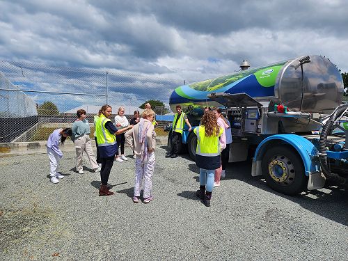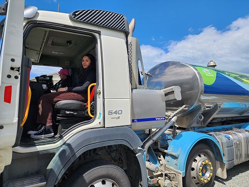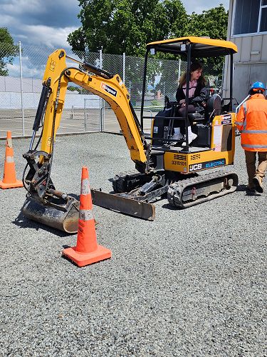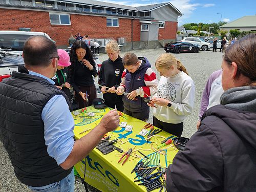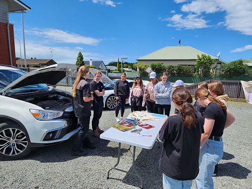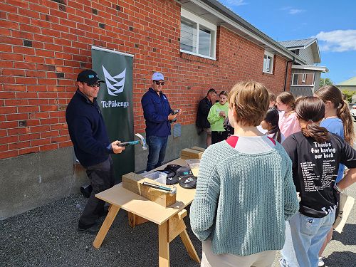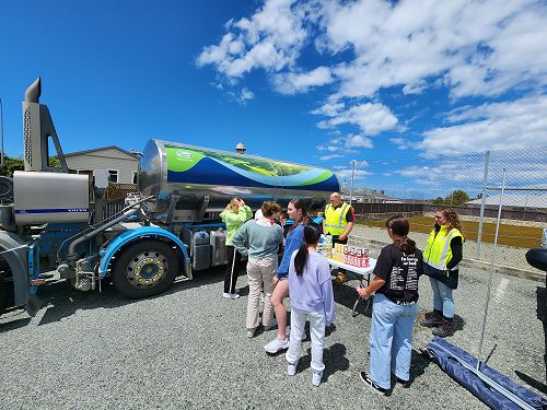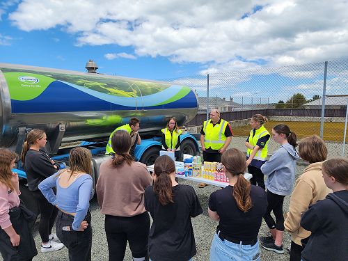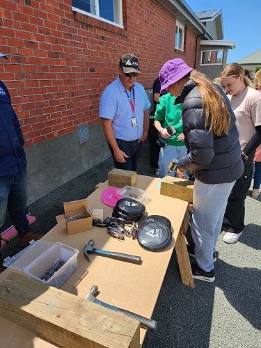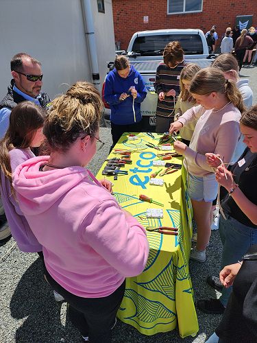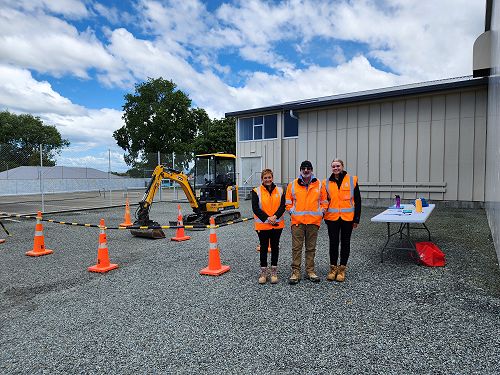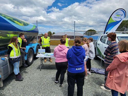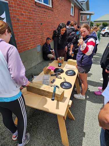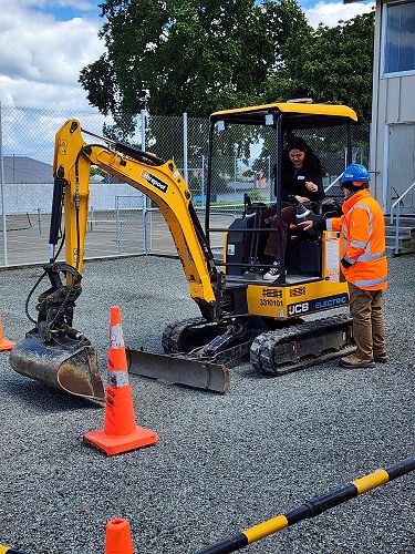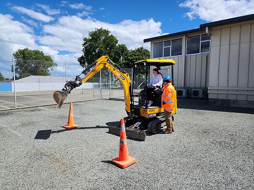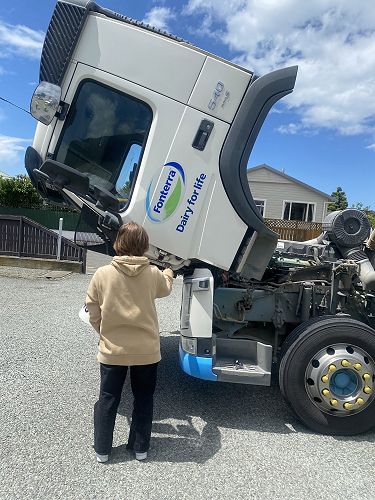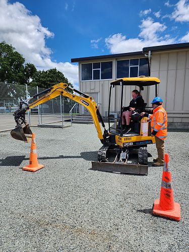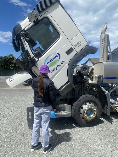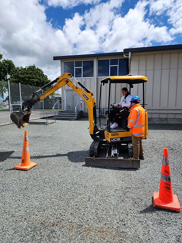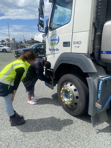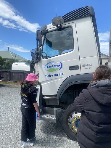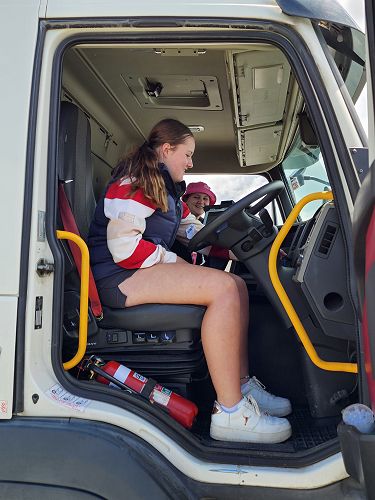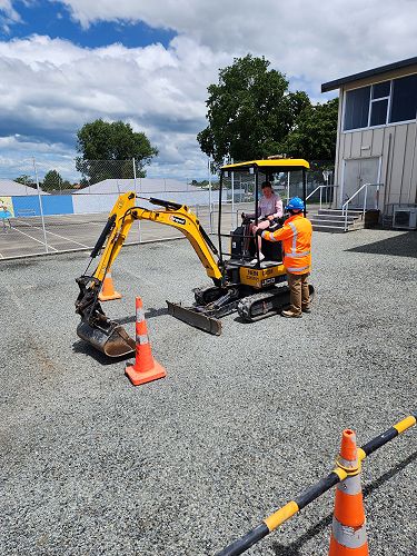 In the afternoon the students participated in a "Trades Have a Go" session run by a number of businesses. They loved painting, hammering, wiring, operating a digger, driving the simulator & climbing inside the cars & Fonterra Tanker.