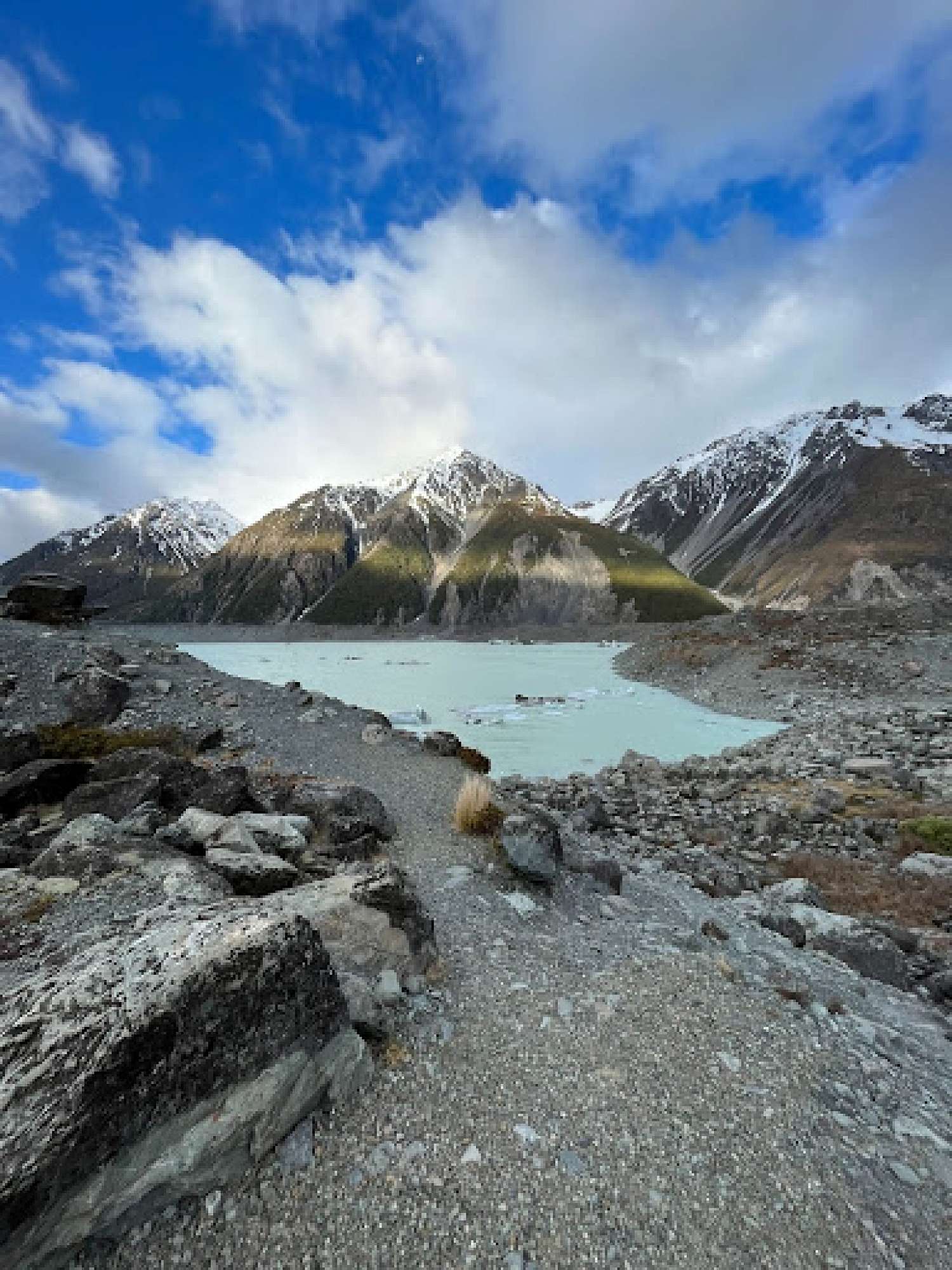 At 8am on Monday the 5th of September the Year 12 Geography class piled into a school van and set out for an overnight adventure to Aoraki Mt Cook. We arrived at Mt Cook around 1pm on Monday and headed straight to the DOC Centre where we got to have a look around and listened to a DOC speaker learning about glaciers, how they move and how they are formed, for our external. After this we headed out to the Hooker Valley track, layered up with warm clothes and walked to the first swing bridge to look at the Muller Glacier and its Terminal Lake. After a very windy walk along the Hooker Valley track we then went to the Tasman Lake walk. After this, we went back to Glentanner holiday park where we all settled in for a cold night.