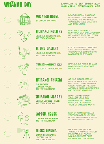 Free creative fun in Titirangi Village on Saturday 13 September from 10am to 2pm.