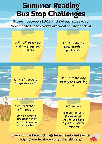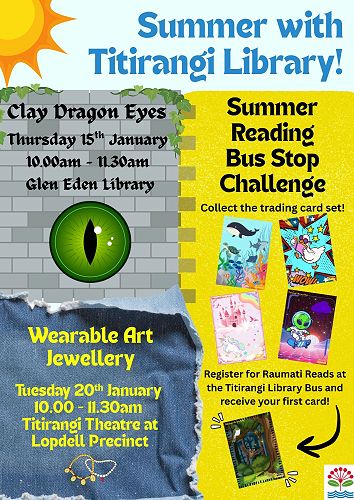 The Titirangi Library has been working out of a bus for the last 6months and will continue for a few more months into 2026. It has been a bit of a challenge to run our usual holiday events, but we think we have come up with some cool options.