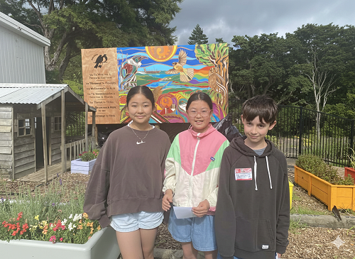 In 2024, a group of Year 5 & 6 students, with the support of Year 2 teacher Robyn Cochrane, worked with artist Shane Hansen to design and create a school mural, supported by the Creatives in School programme (no longer available unfortunately - let's bring that one back!)