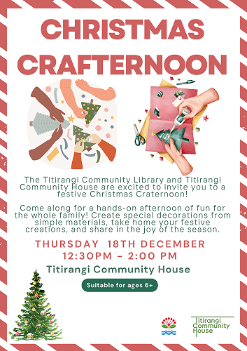 Join us at the Titirangi Community Library & Community House for a relaxed, festive crafting afternoon.