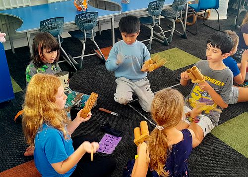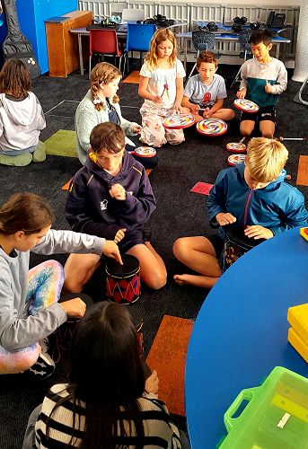 🌧️🌏 Year 4 students took a deep dive into Māori mythology, using untuned percussion and everyday household items to create rich soundscapes retelling the beautiful legend of Ranginui and Papatūānuku.