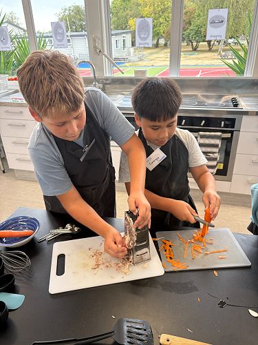 Our Senior students have been hard at work, carefully tying back the tomato vines in the hothouse and harvesting fresh courgettes, marrow and pumpkin from the main gardens. These were transformed into delicious vegetable fritters, complemented by freshly picked silver beet and carrots among other vegetables. To accompany the fritters, students prepared a vibrant salad featuring kale, red cabbage, parsley, coriander, carrot, and apple—an absolutely delicious combination!