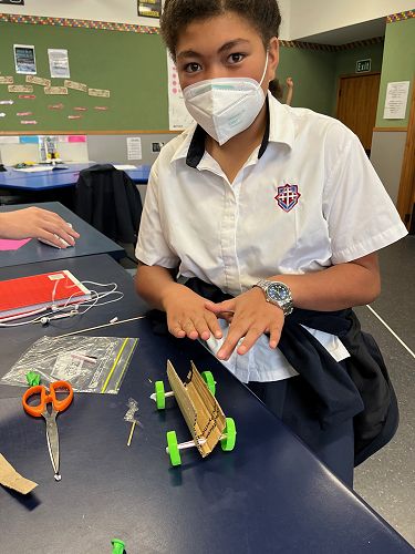 To take the project to the next level, students then selected one aspect of their design that they could change to improve their results. The task moved from out maneuvering the other teams to beating their own original design and it was lovely to see their enthusiasm when their plans came together. Students were able to use some of the science they had learnt throughout the team while gaining experience in the “soft skills” of how to work together in a team, problem solving and time management. The winning distance was 13.47m, but even those groups that got an initial distance of 0m improved their design!
